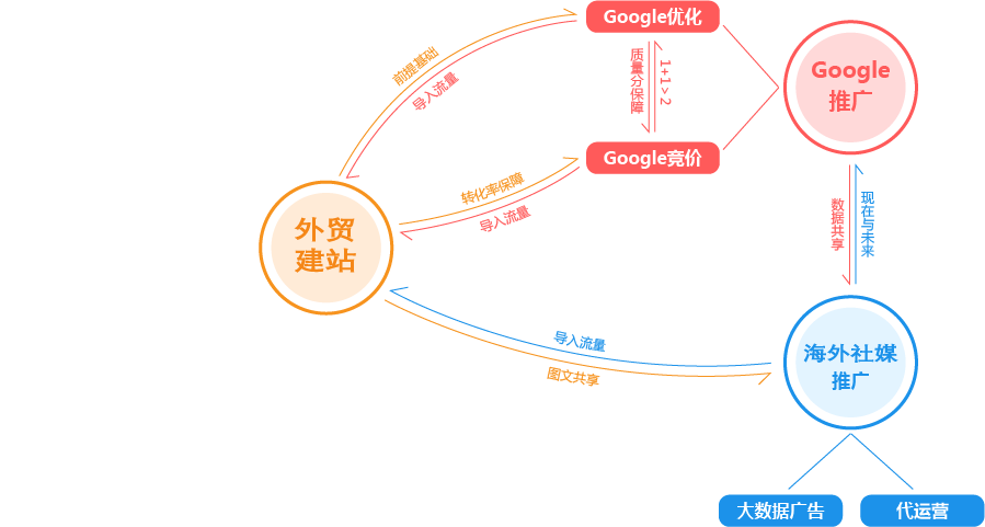 沈阳外贸推广公司为您提供全面的“整合”方案,为您的企业提供全生命周期的精细化服务和咨询。为此,我们搭建了从广告投放到SEO优化,从内容运营到网站开发,从品牌策划到电商运营的近100人的团队,组成了一家集全球渠道资源、人才资源、技术资源为一体的数字营销机构,为您一站式解决出海难题,实现品牌全球推广!